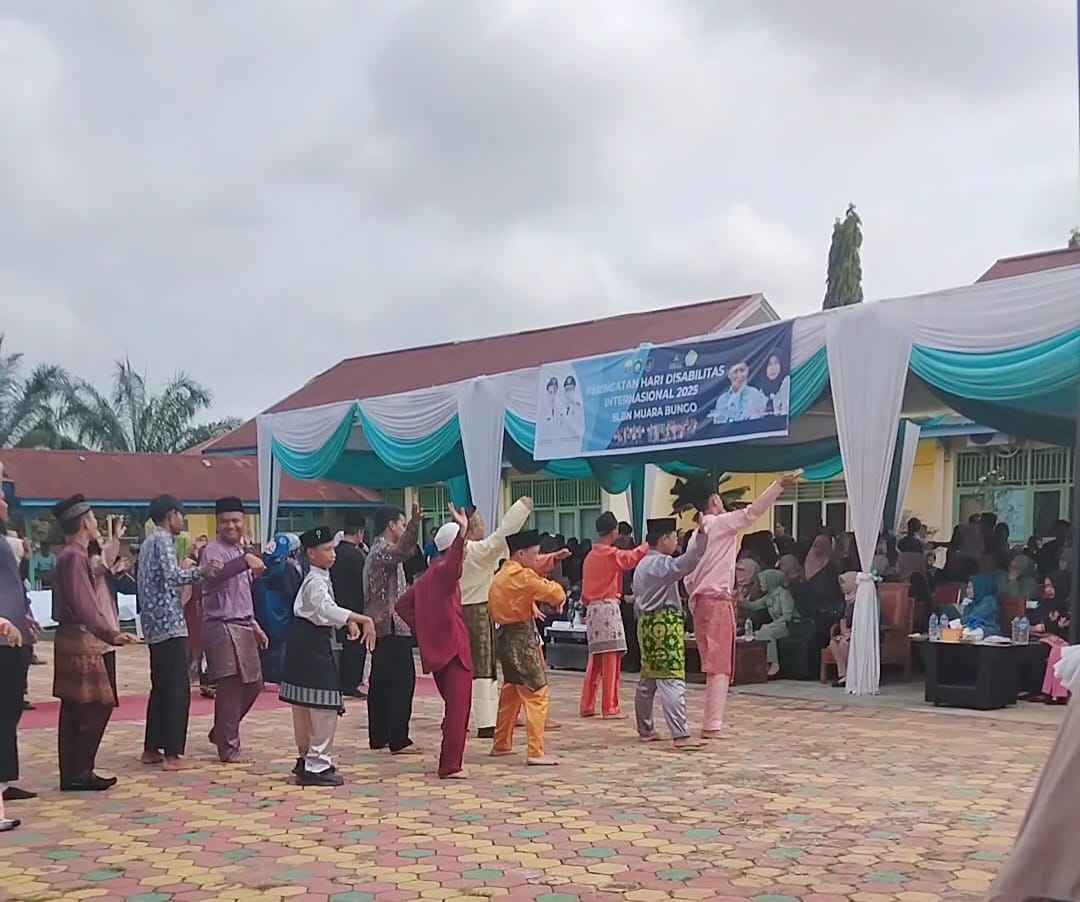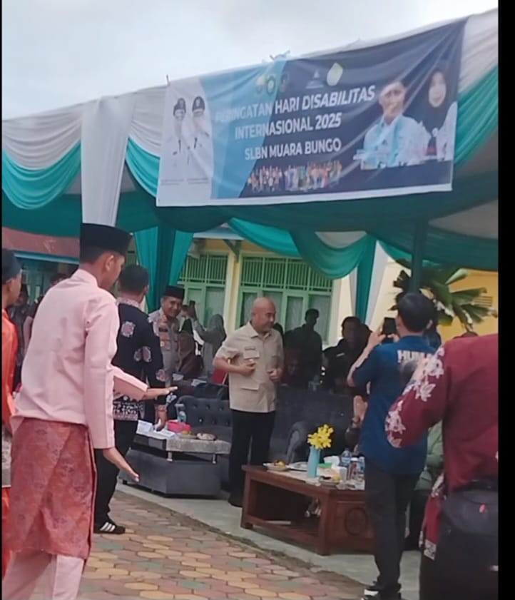 lintasakurat.com Bungo 05/12/2025 – Bupati Bungo, Bapak H. Dedy Putra, SH, Kamis 3 Desember 2025 menghadiri acara Hari Disabilitas Internasional (HBI) di Sekolah SLBN Kab. Bungo. Acara ini dihadiri oleh OPD, Kapolres, Dandim, Ketua GOW, guru, dan para undangan wali murid. Bapak Bupati berharap anak-anak siswa-siswi dapat mandiri setelah lulus dari sekolah ini. Beliau juga mengucapkan terima kasih dan berdoa kepada Allah SWT, serta memberikan kekuatan kepada para guru untuk sabar dan tekun dalam memberikan pendidikan kepada anak-anak. Pemerintah daerah siap membantu dan mendukung semua kegiatan di sekolah ini.